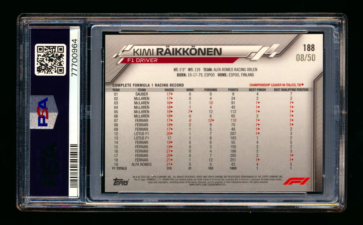 2020 Topps Chrome Sapphire F1 #188 Kimi Raikkonen RC Gold Refractor #08/50 PSA 9 ** (SOLD eBay - $89.00 - 3/11/2025) **