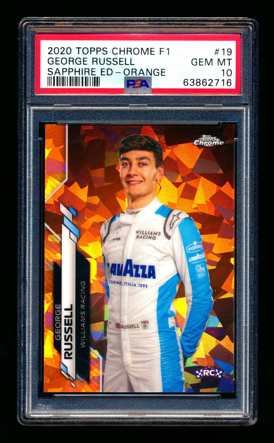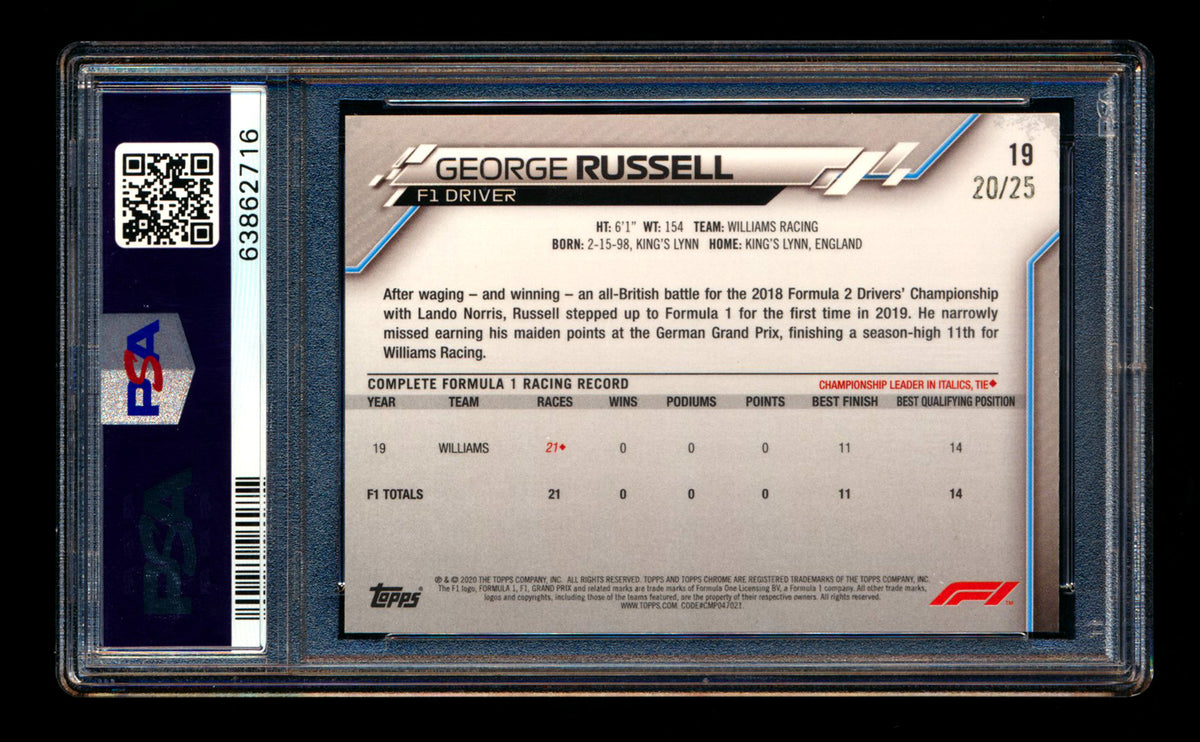 2020 Topps Chrome Sapphire F1 #19 George Russell RC Orange Refractor Portrait #20/25 PSA 10 ** (SOLD - $2,600.00 - 10/15/2025) **