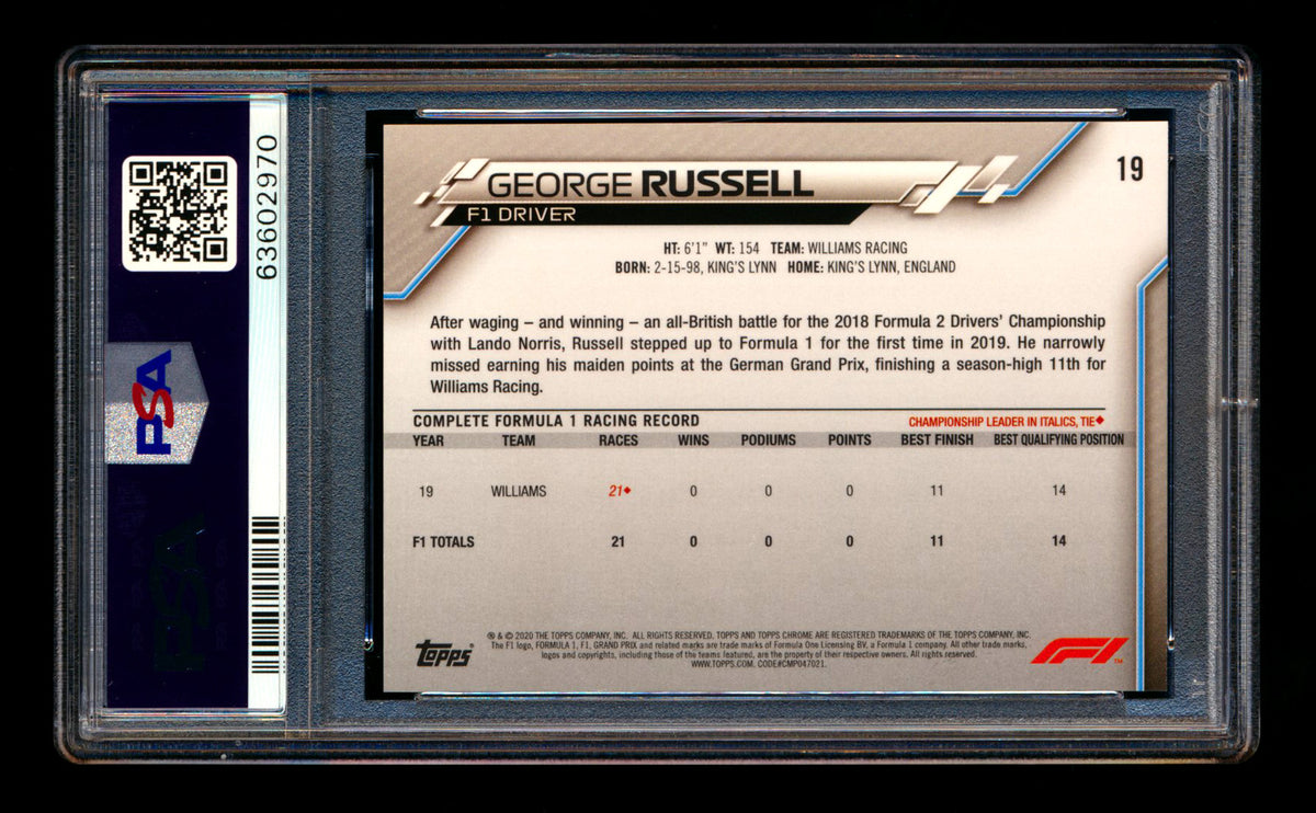 2020 Topps Chrome Sapphire F1 #19 George Russell RC Refractor Portrait PSA 10 ** (SOLD eBay - $75.00 - 5/6/2025) **