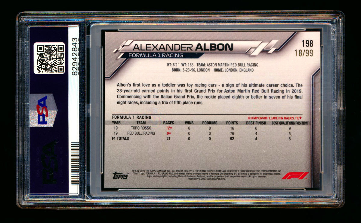 2020 Topps Chrome Sapphire F1 #198 Alexander Albon RC Aqua Refractor #18/99 PSA 10 ** (SOLD eBay - $120.00 - 5/27/2025) **