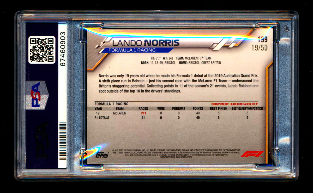 2020 Topps Chrome Sapphire F1 #199 Lando Norris RC Gold Refractor #19/50 PSA 9 ** (SOLD - $375.00 - 9/18/2025) **