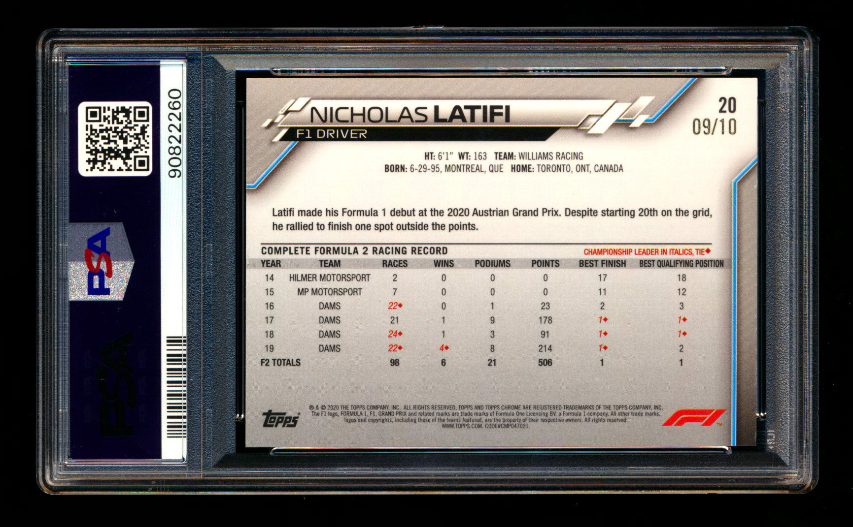 2020 Topps Chrome Sapphire F1 #20 Nicholas Latifi RC Purple Refractor Portrait #09/10 PSA 7 ** (SOLD eBay - $315.00 - 9/26/2025) **