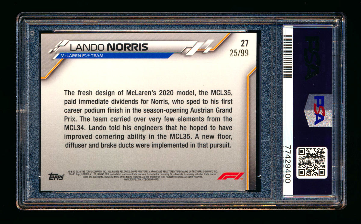 2020 Topps Chrome Sapphire F1 #27 Lando Norris RC Aqua Refractor #25/99 PSA 9 ** (SOLD Nationals - $70.00 - 7/31/2025) **