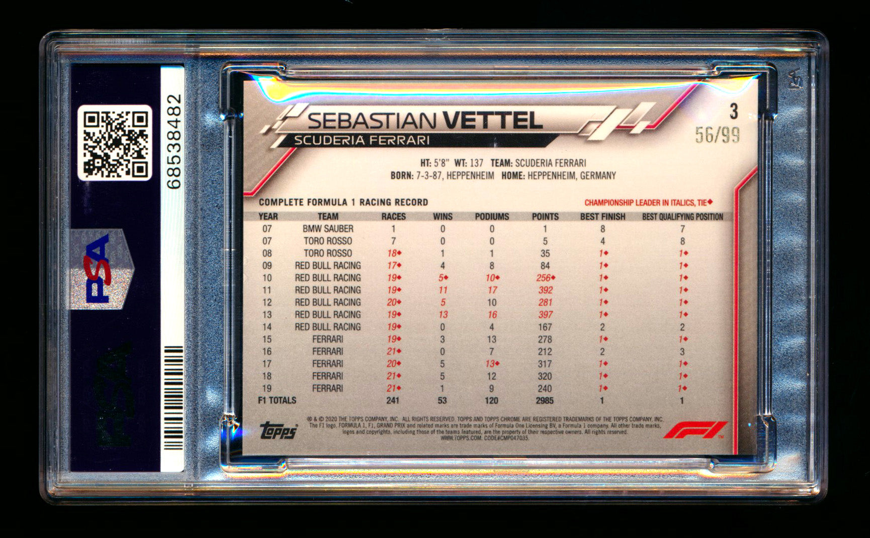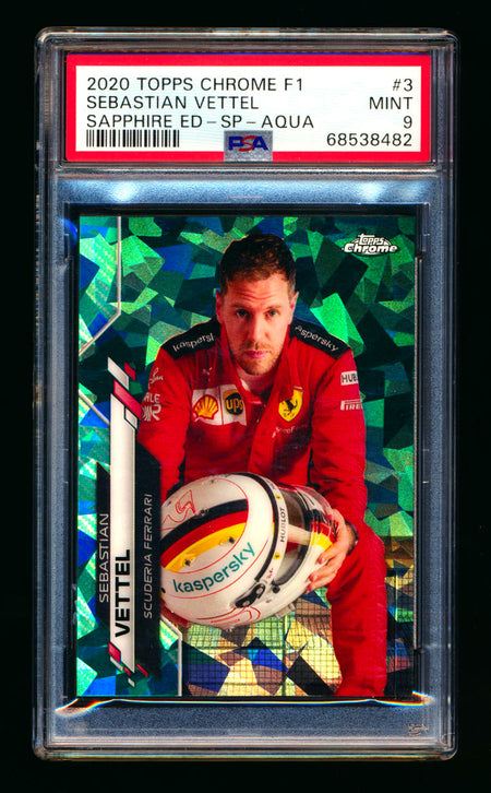 2020 Topps Chrome Sapphire F1 #3 Sebastian Vettel RC Aqua Refractor Image Variation SP #56/99 PSA 9 ** (SOLD eBay - $295.00 - 10/1/2025) **