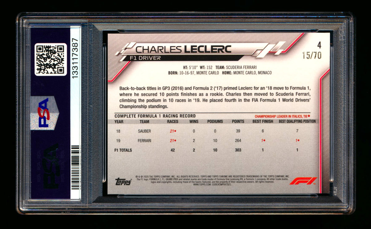 2020 Topps Chrome Sapphire F1 #4 Charles Leclerc RC 70th Silver Refractor Portrait #15/70 PSA 9 ** (SOLD eBay - $800.00 - 3/9/2026) **
