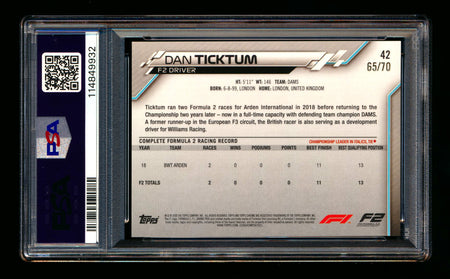 2020 Topps Chrome Sapphire F1 #42 Dan Ticktum RC 70th Silver Refractor #65/70 PSA 10 - POP 1!