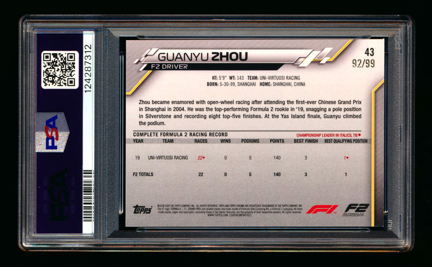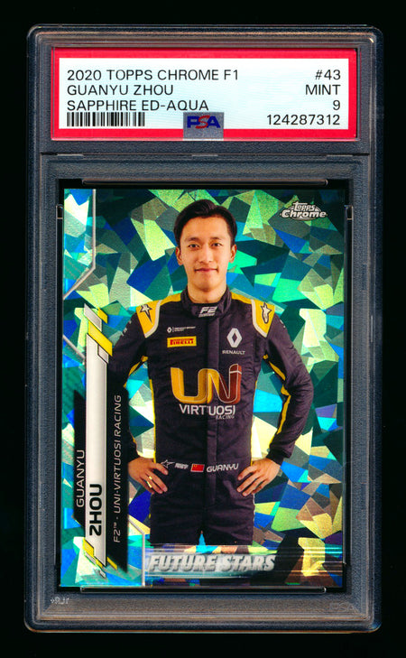 2020 Topps Chrome Sapphire F1 #43 Guanyu Zhou RC Aqua Refractor #92/99 PSA 9