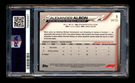 2020 Topps Chrome Sapphire F1 #5 Alexander Albon RC 70th Silver Refractor Image Variation SP #34/70 PSA 9 ** (SOLD - $295.00 - 9/25/2025) **