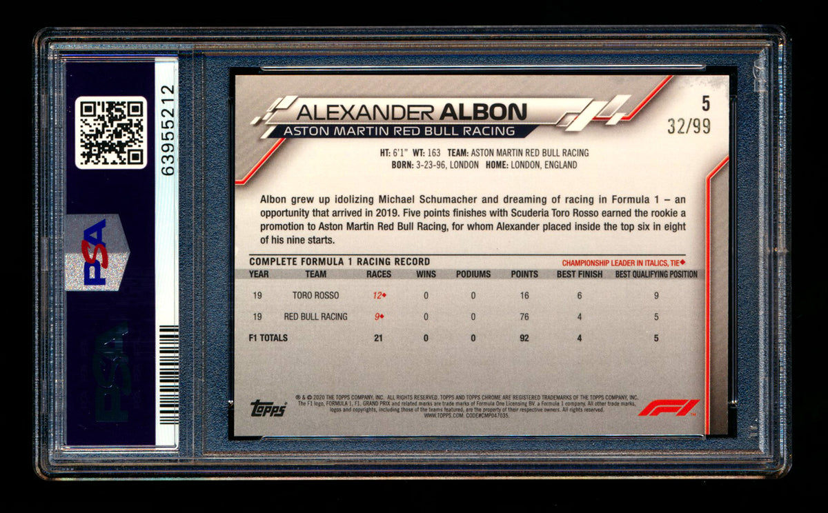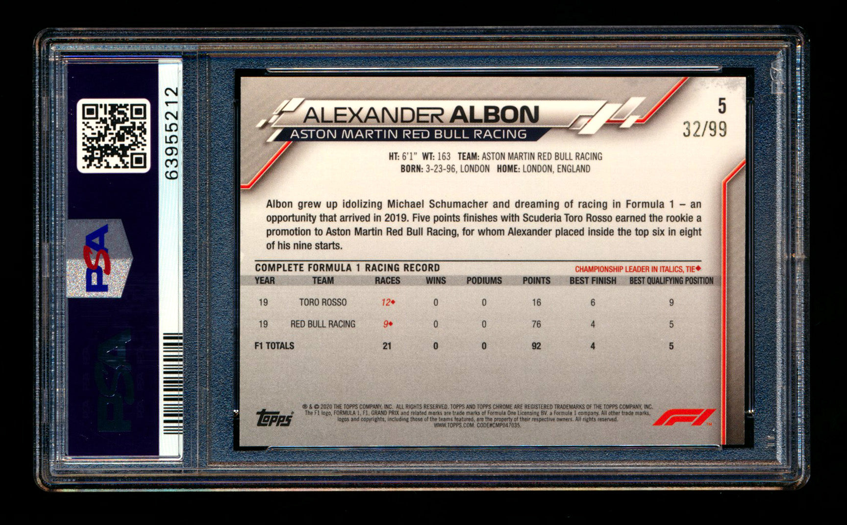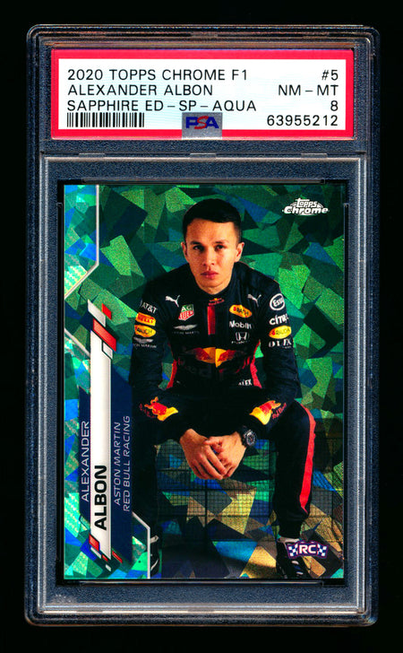 2020 Topps Chrome Sapphire F1 #5 Alexander Albon RC Aqua Refractor Image Variation SP #32/99 PSA 8 ** (SOLD eBay - $119.00 - 5/29/2025) **