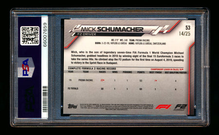 2020 Topps Chrome Sapphire F1 #53 Mick Schumacher RC Orange Refractor #14/25 PSA 8 ** (SOLD - $149.00 - 9/12/2025) **