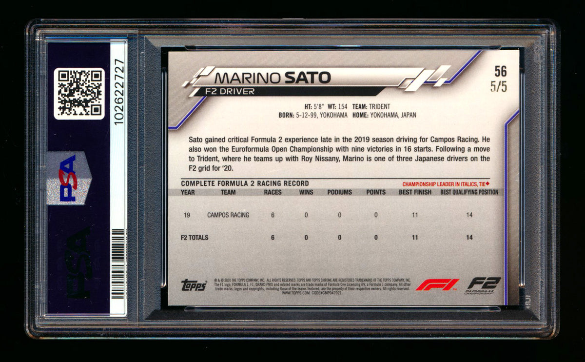 2020 Topps Chrome Sapphire F1 #56 Marino Sato RC Red Refractor #5/5 PSA 6 (Last #!) ** (SOLD eBay - $195.00 - 10/10/2025) **