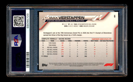 2020 Topps Chrome Sapphire F1 #6 Max Verstappen RC Refractor Image Variation SP PSA 10 ** (SOLD eBay - $775.00 - 7/9/2025) **