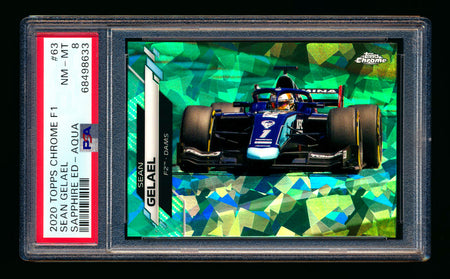2020 Topps Chrome Sapphire F1 #63 Sean Gelael RC Aqua Refractor #45/99 PSA 8 ** (SOLD eBay - $15.00 - 4/13/2025) **