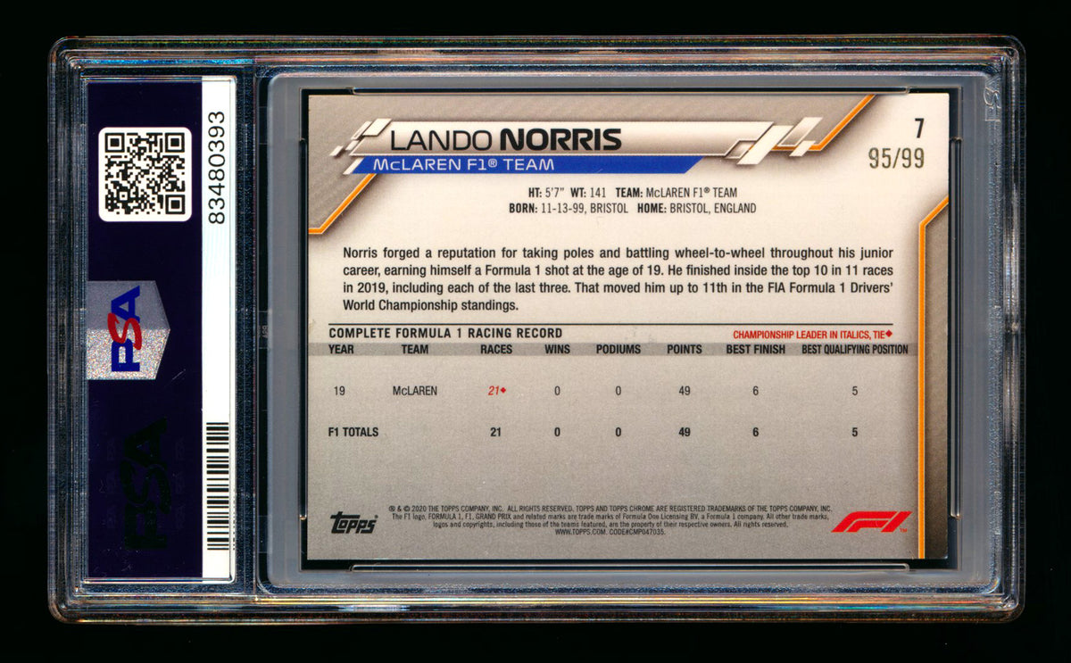 2020 Topps Chrome Sapphire F1 #7 Lando Norris RC Aqua Refractor Image Variation SP #95/99 PSA 8 ** (SOLD eBay - $350.00 - 9/23/2025) **
