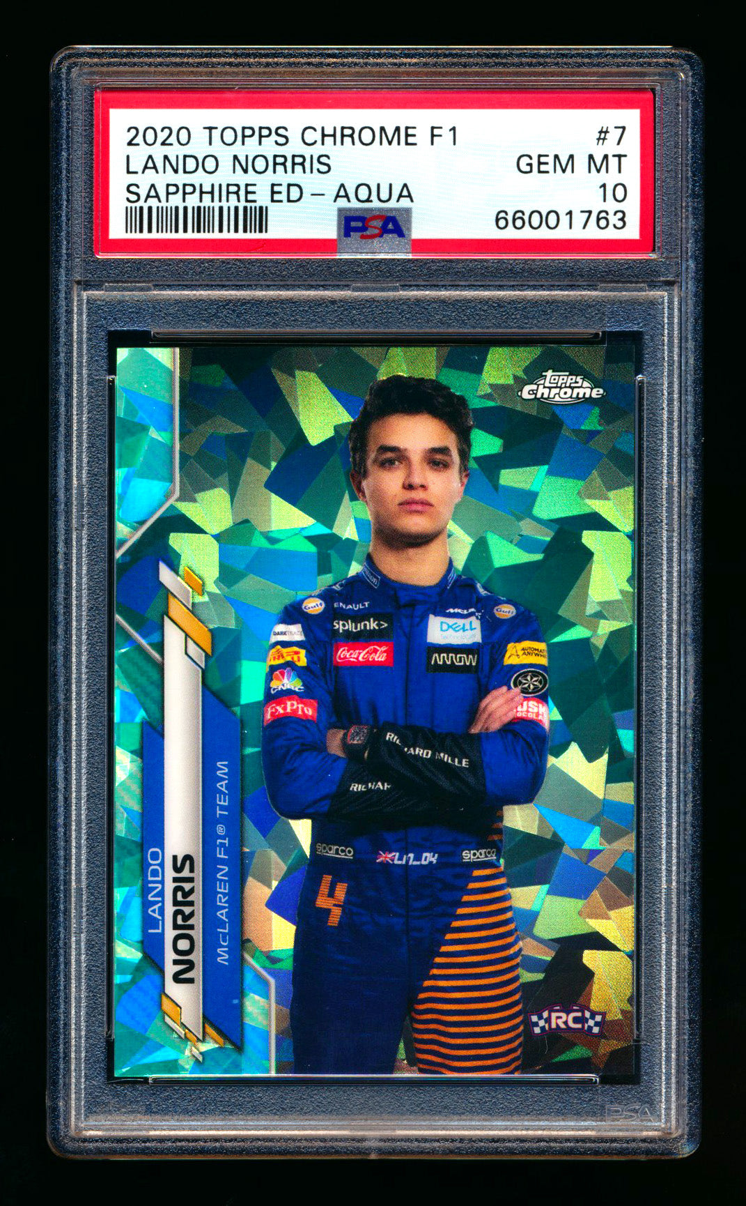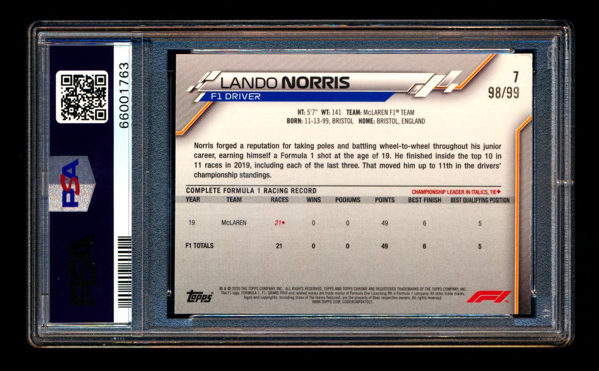 2020 Topps Chrome Sapphire F1 #7 Lando Norris RC Aqua Refractor Portrait #98/99 PSA 10 ** (SOLD Fanatics Fest - $1100.00 - 6/21/2025) **