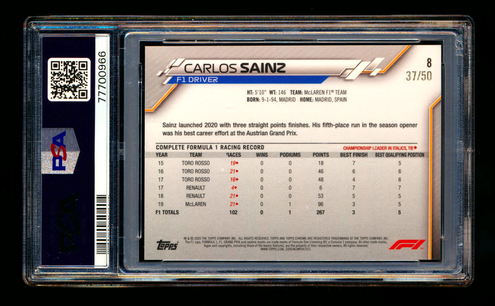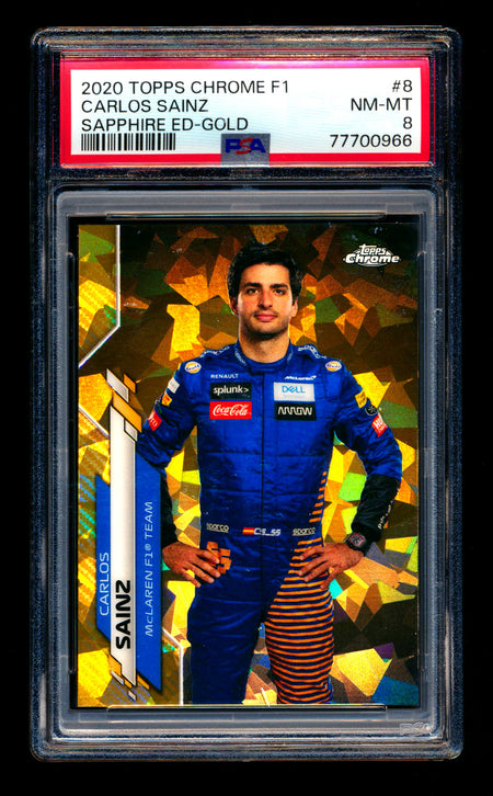 2020 Topps Chrome Sapphire F1 #8 Carlos Sainz RC Gold Refractor Portrait #37/50 PSA 8 ** (SOLD - $200.00 - 9/19/2025) **