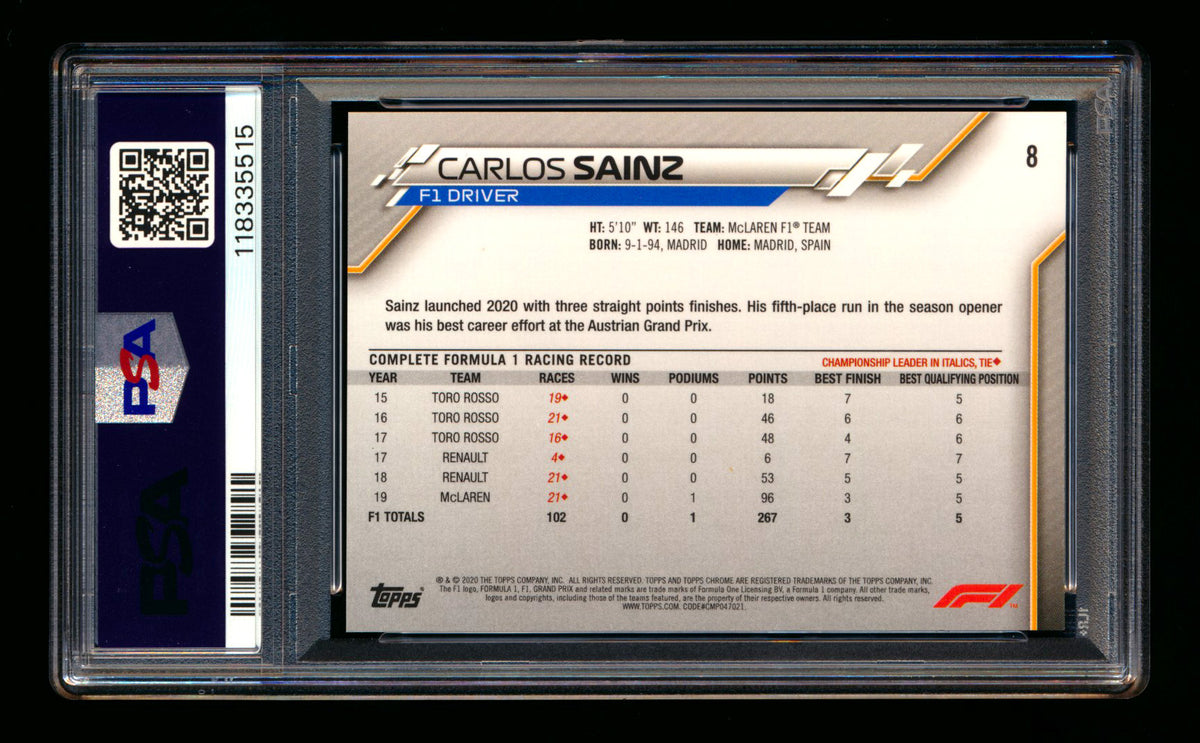 2020 Topps Chrome Sapphire F1 #8 Carlos Sainz RC Refractor Portrait PSA 10