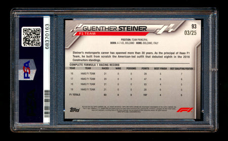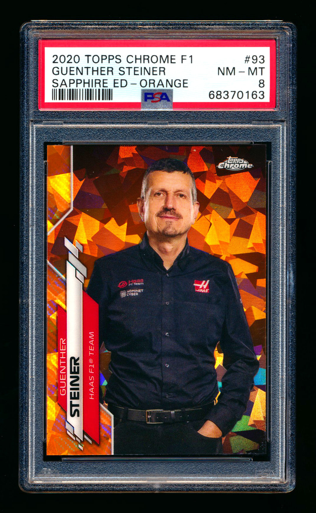 2020 Topps Chrome Sapphire F1 #93 Guenther Steiner RC Orange Refractor #03/25 PSA 8 ** (SOLD - $59.00 - 6/22/2025) **