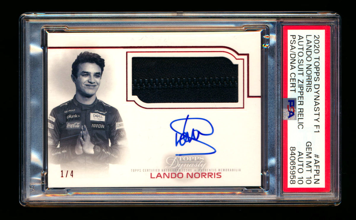 2020 Topps Dynasty F1 #AFP-LN Lando Norris Red ROOKIE Zipper Patch Autograph #1/4 PSA 10 Gem Mint DNA 10 (First #!) - POP 1!