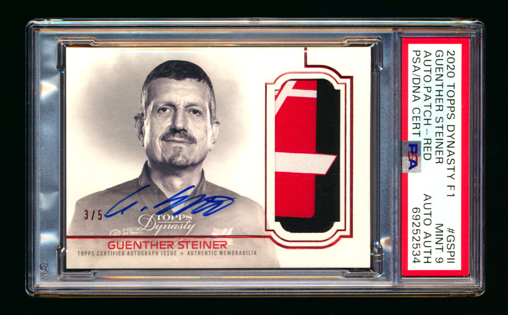 2020 Topps Dynasty F1 #DAP-GSPII Guenther Steiner Red ROOKIE Patch Autograph #3/5 PSA 9 Mint ** (SOLD Nationals - $500.00 - 8/3/2025) **