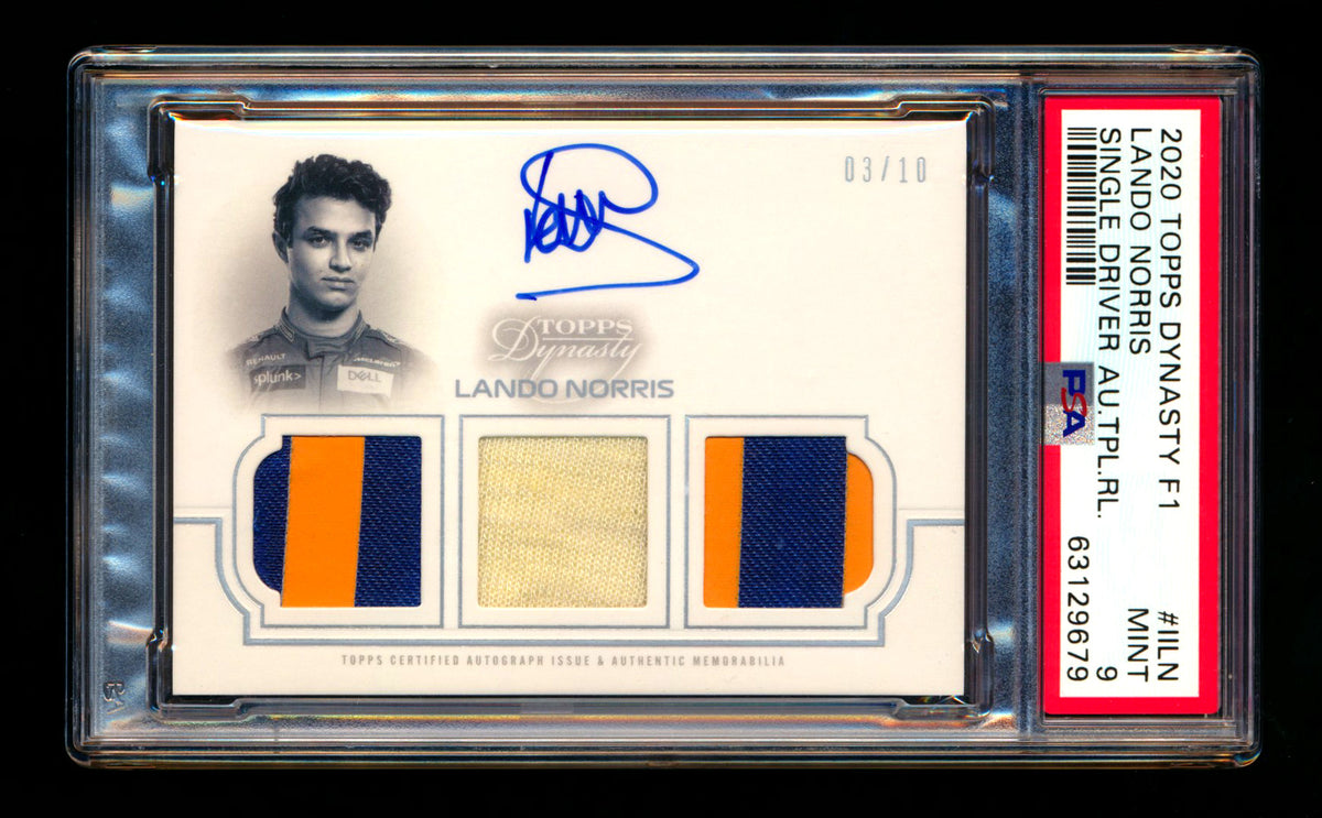 2020 Topps Dynasty F1 #TRA-IILN Lando Norris ROOKIE Triple Patch Autograph #03/10 PSA 9 Mint ** (SOLD eBay - $2300.00 - 7/8/2025) **