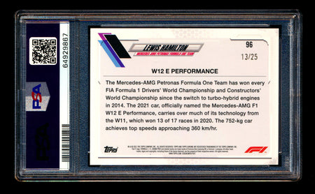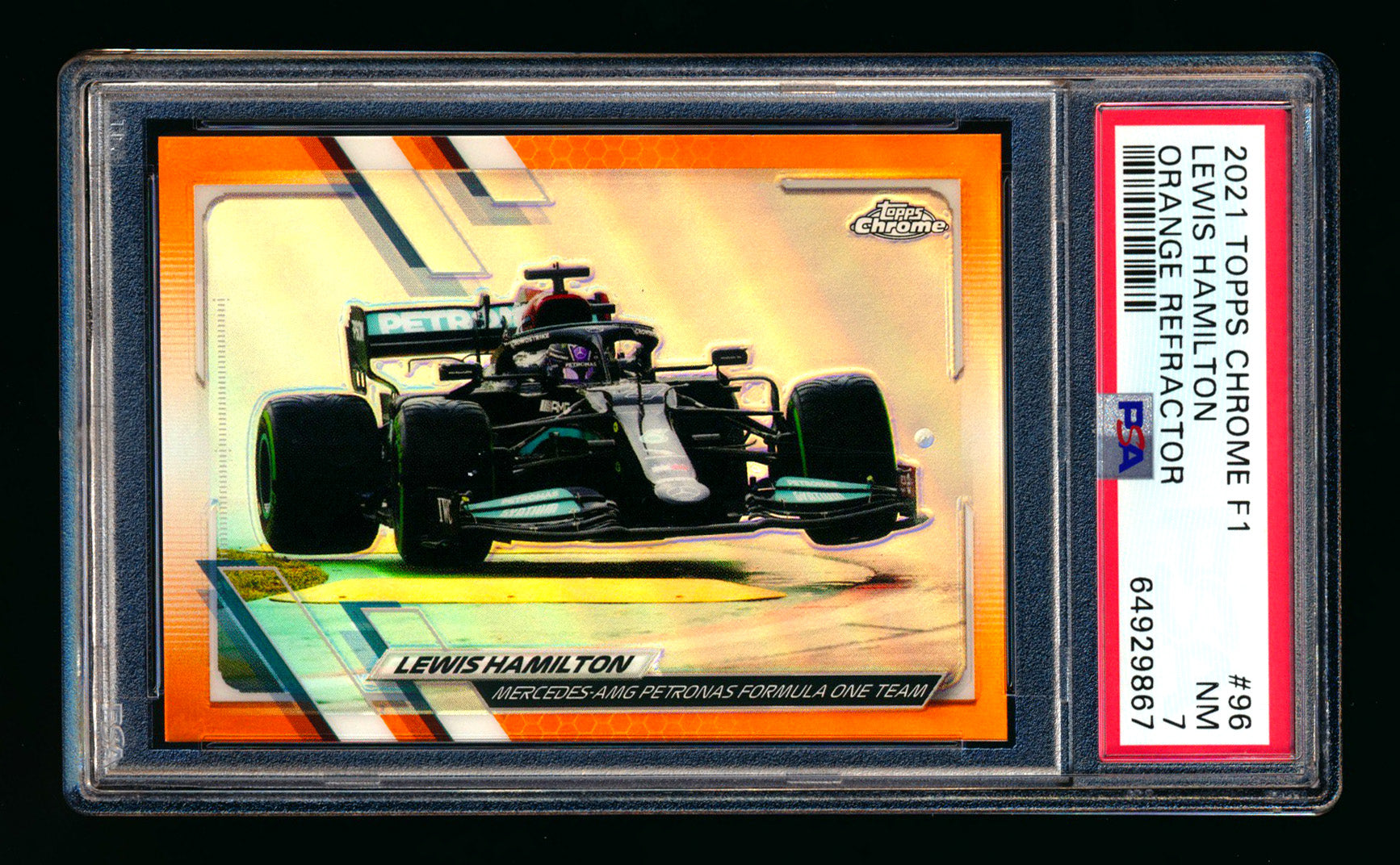 2021 Topps Chrome F1 #96 Lewis Hamilton Orange Refractor #13/25 PSA 7 ** (SOLD eBay - $39.00 - 5/30/2025) **
