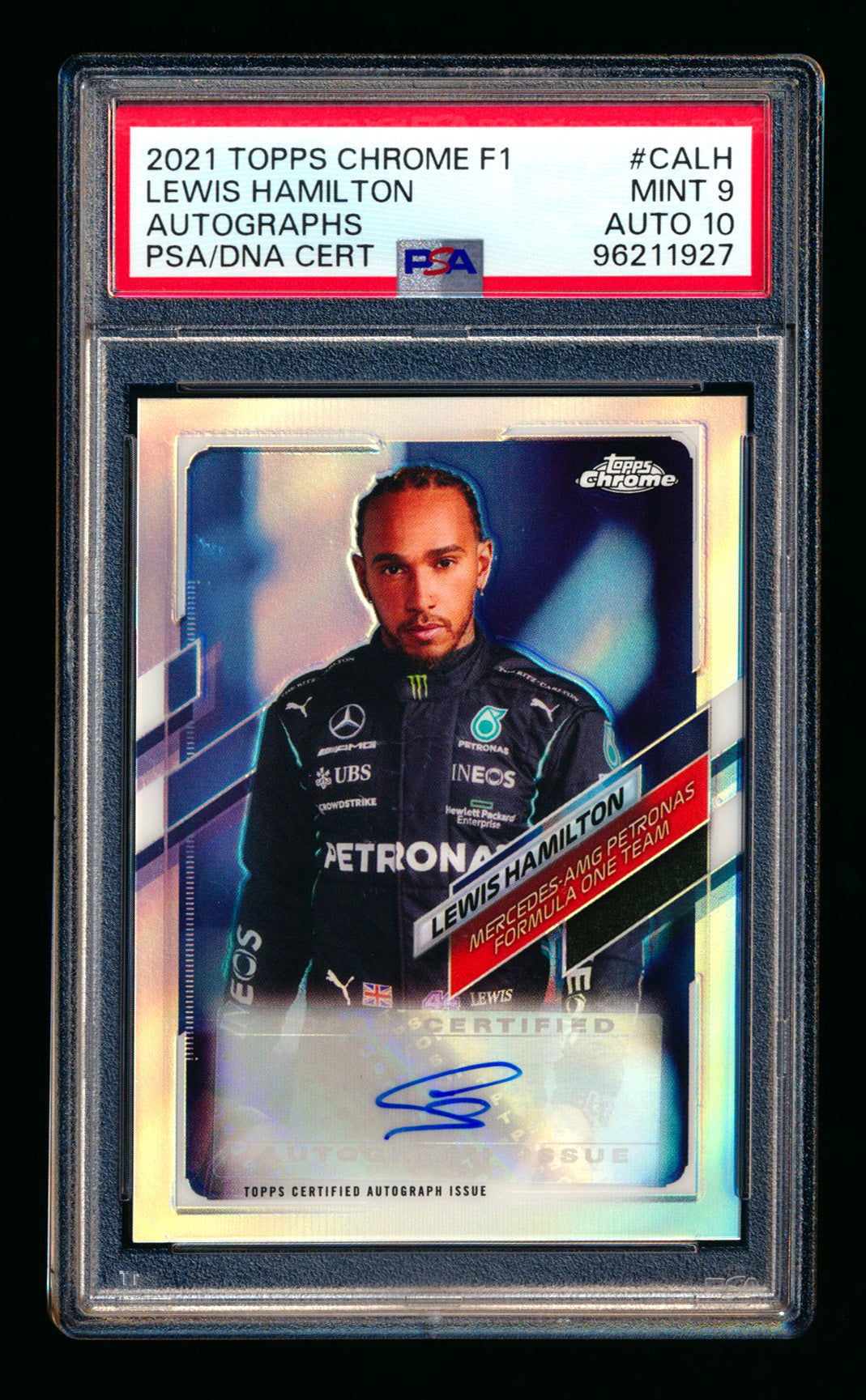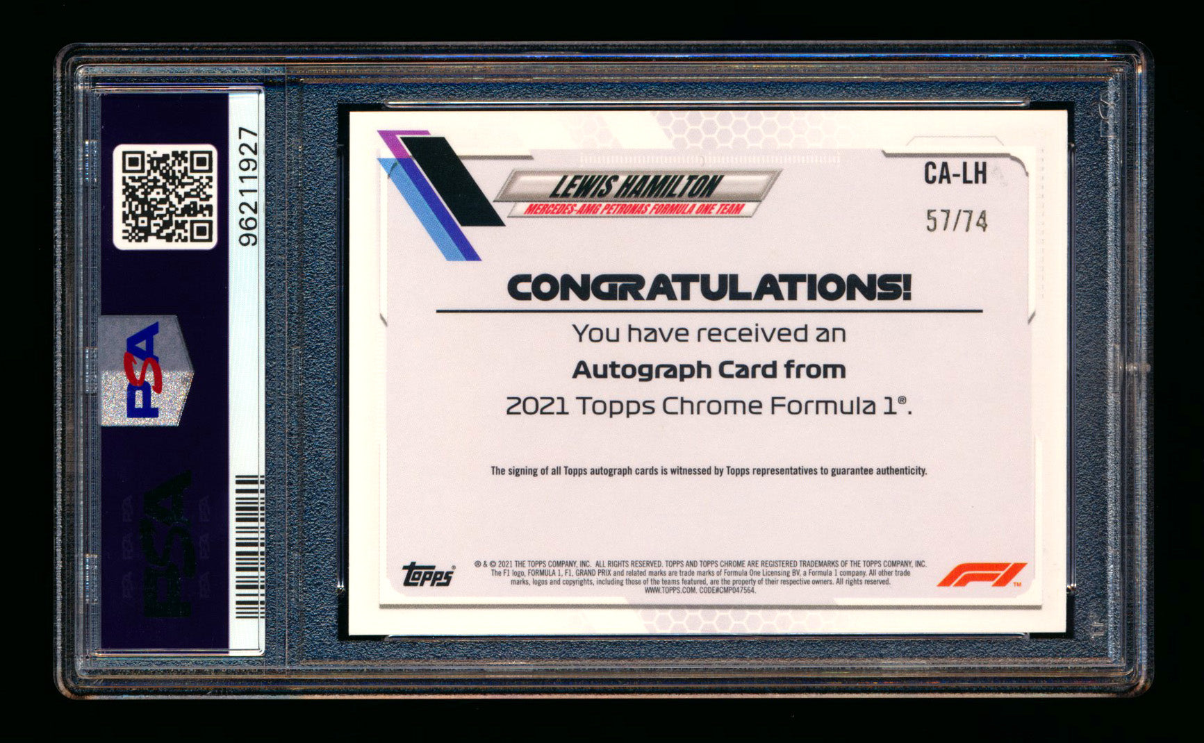 2021 Topps Chrome F1 #CA-LH Lewis Hamilton Refractor Autograph #57/74 PSA 9 DNA 10 ** (SOLD eBay - $1800.00 - 2/16/2025) **