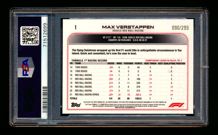 2022 Topps Chrome F1 #1 Max Verstappen Mini Diamond Refractor Portrait #090/299 PSA 10 ** (SOLD eBay - $149.00 - 2/18/2026) **