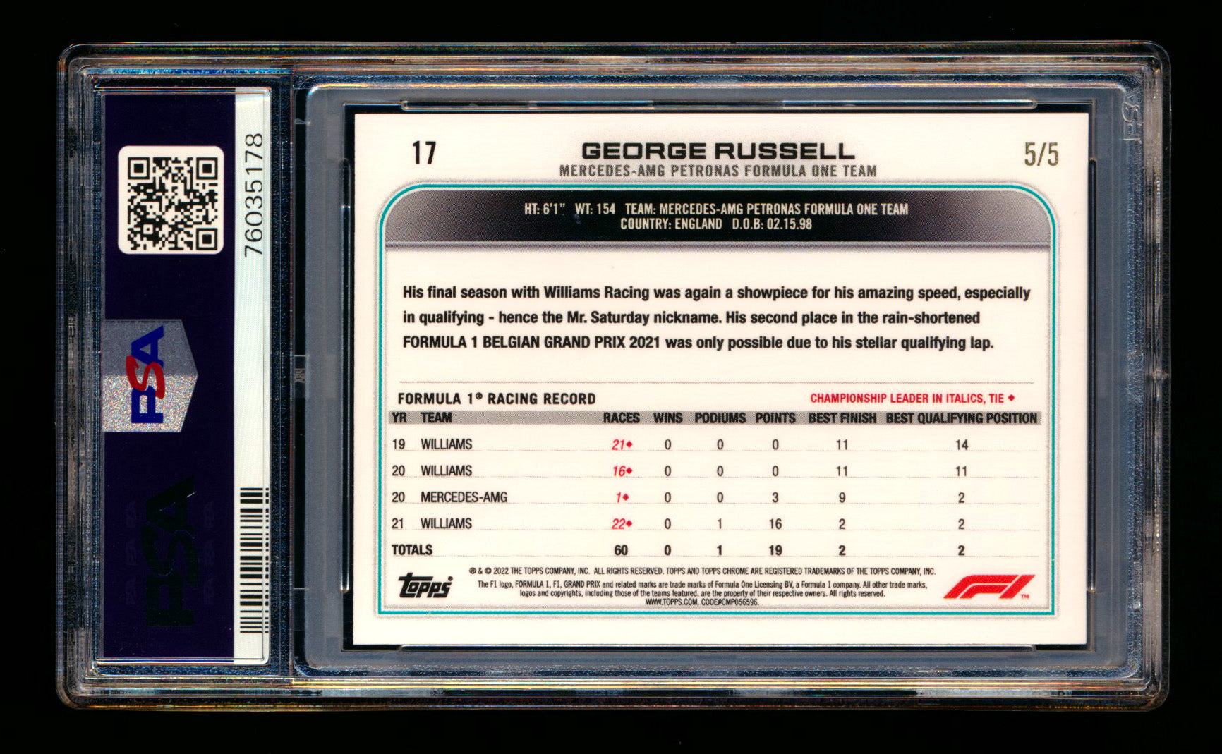 2022 Topps Chrome F1 #17 George Russell Red Wave Refractor Portrait #5/5 PSA 10 (Last #!) ** (SOLD eBay - $595.00 - 8/27/2025) **