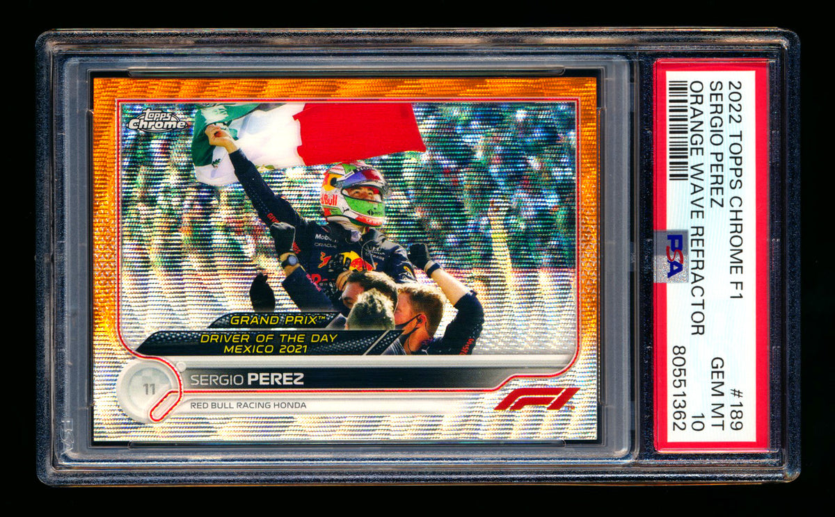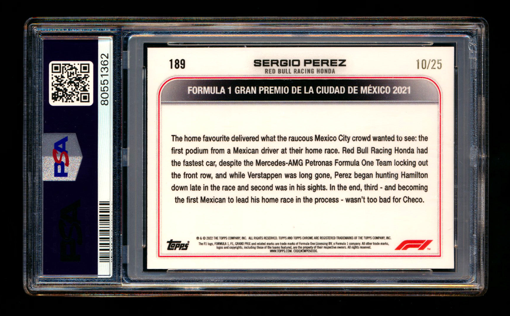 2022 Topps Chrome F1 #189 Sergio Perez Orange Wave Refractor #10/25 PSA 10