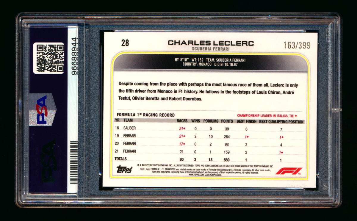 2022 Topps Chrome F1 #28 Charles Leclerc Purple Refractor #163/399 PSA 10