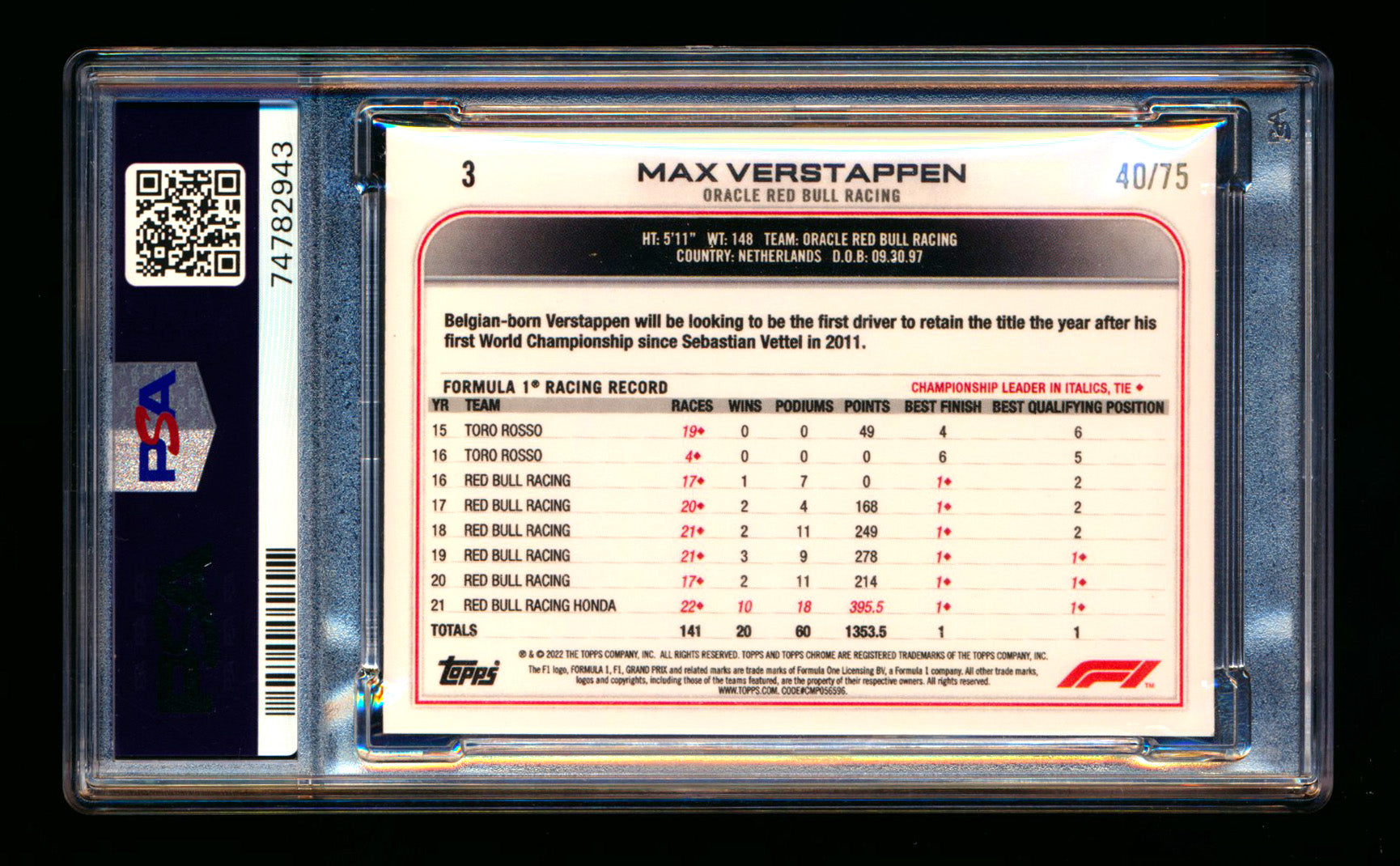 2022 Topps Chrome F1 #3 Max Verstappen Pink Refractor #40/75 PSA 9 ** (SOLD - $39.00 - 7/23/2025) **