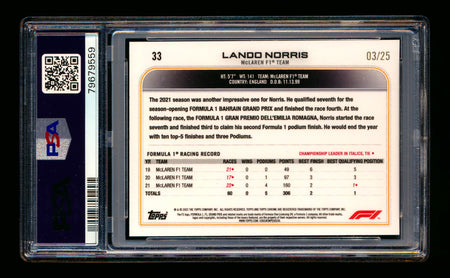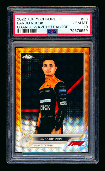 2022 Topps Chrome F1 #33 Lando Norris Orange Wave Refractor Portrait #03/25 PSA 10