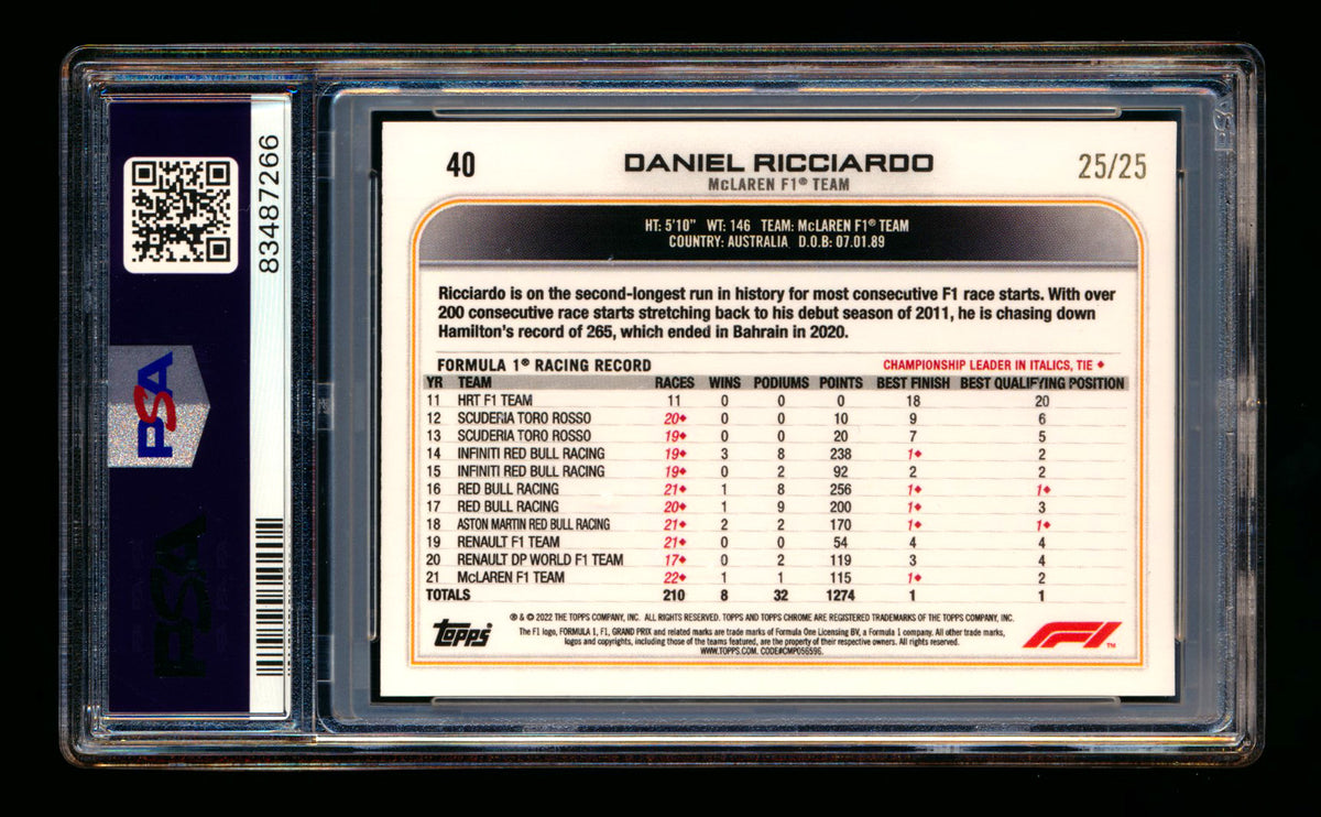 2022 Topps Chrome F1 #40 Daniel Ricciardo Orange Wave Refractor #25/25 PSA 10 (Last Number!)