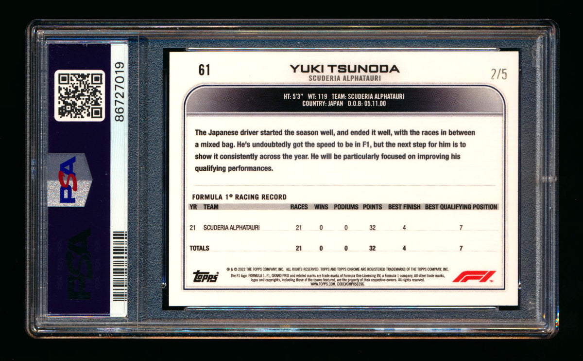 2022 Topps Chrome F1 #61 Yuki Tsunoda Red Raywave Refractor Portrait #2/5 PSA 10