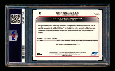 2022 Topps Chrome F1 #96 Cem Bolukbasi RC Orange Refractor #22/25 PSA 9