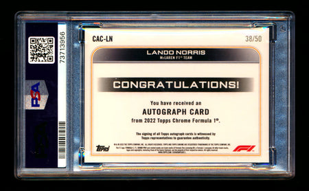 2022 Topps Chrome F1 #CAC-LN Lando Norris Gold Wave Refractor Autograph #38/50 PSA 9