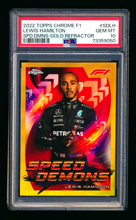 2022 Topps Chrome F1 Speed Demons #SD-LH Lewis Hamilton Gold Refractor #27/50 PSA 10