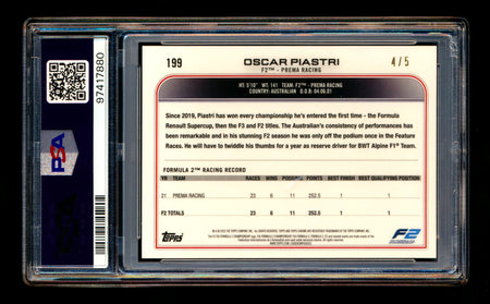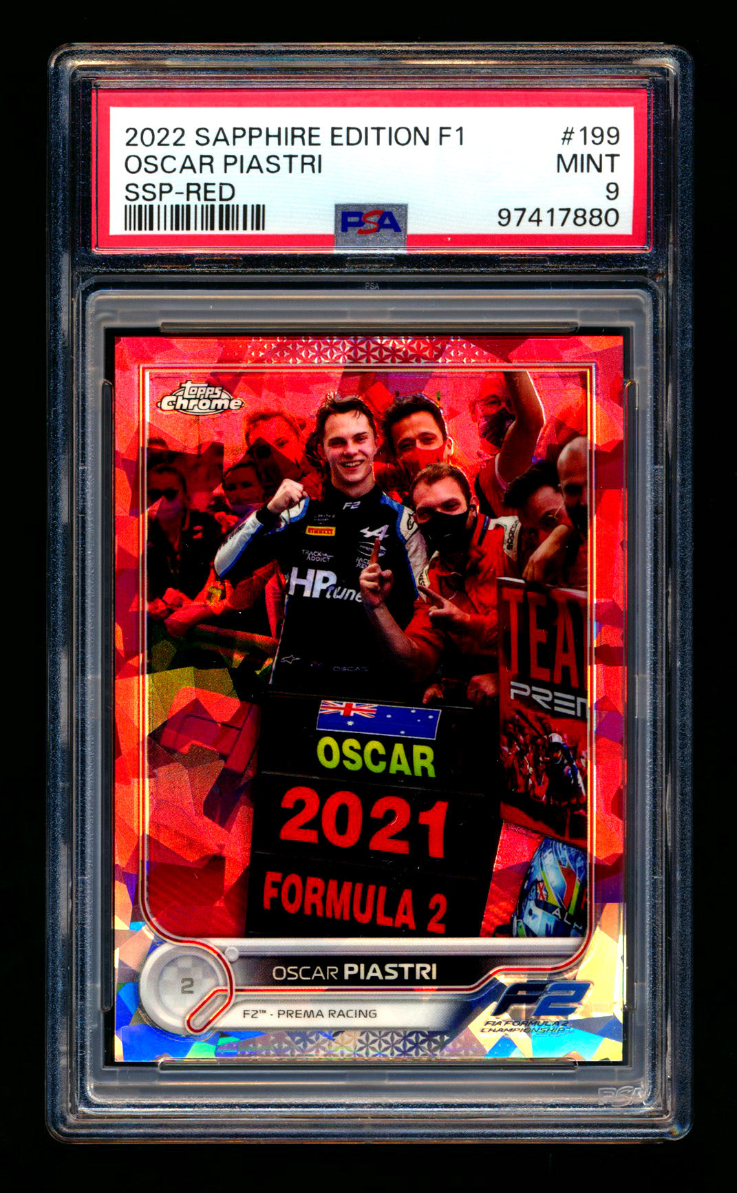 2022 Topps Chrome Sapphire F1 #199 Oscar Piastri RC Red Refractor Image Variation SSP #4/5 PSA 9 ** (SOLD eBay - $1,600.00 - 8/18/2025) **