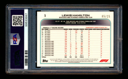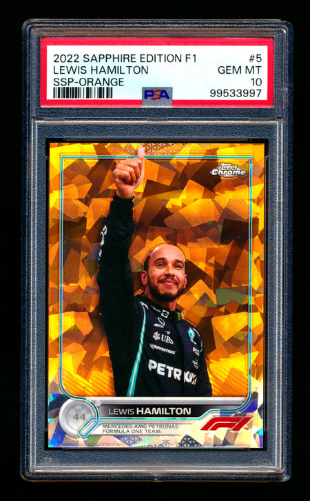 2022 Topps Chrome Sapphire F1 #5 Lewis Hamilton Orange Refractor Image Variation SSP #05/25 PSA 10