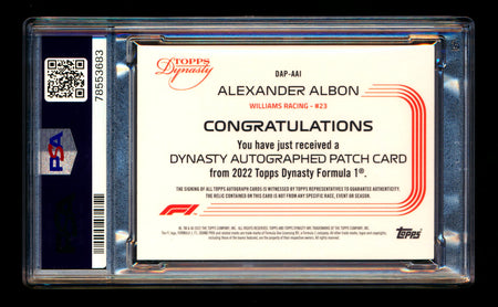 2022 Topps Dynasty F1 #DAP-AAI Alexander Albon Gold Patch Autograph #1/1 PSA 8 NM-MT - POP 1! ** (SOLD National - $1295.00 - 8/1/2025) **