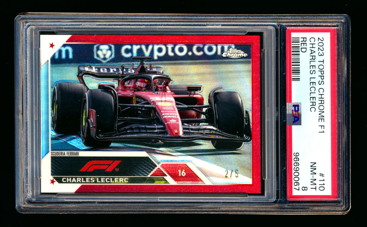 2023 Topps Chrome F1 #110 Charles Leclerc Red Refractor #2/5 PSA 8