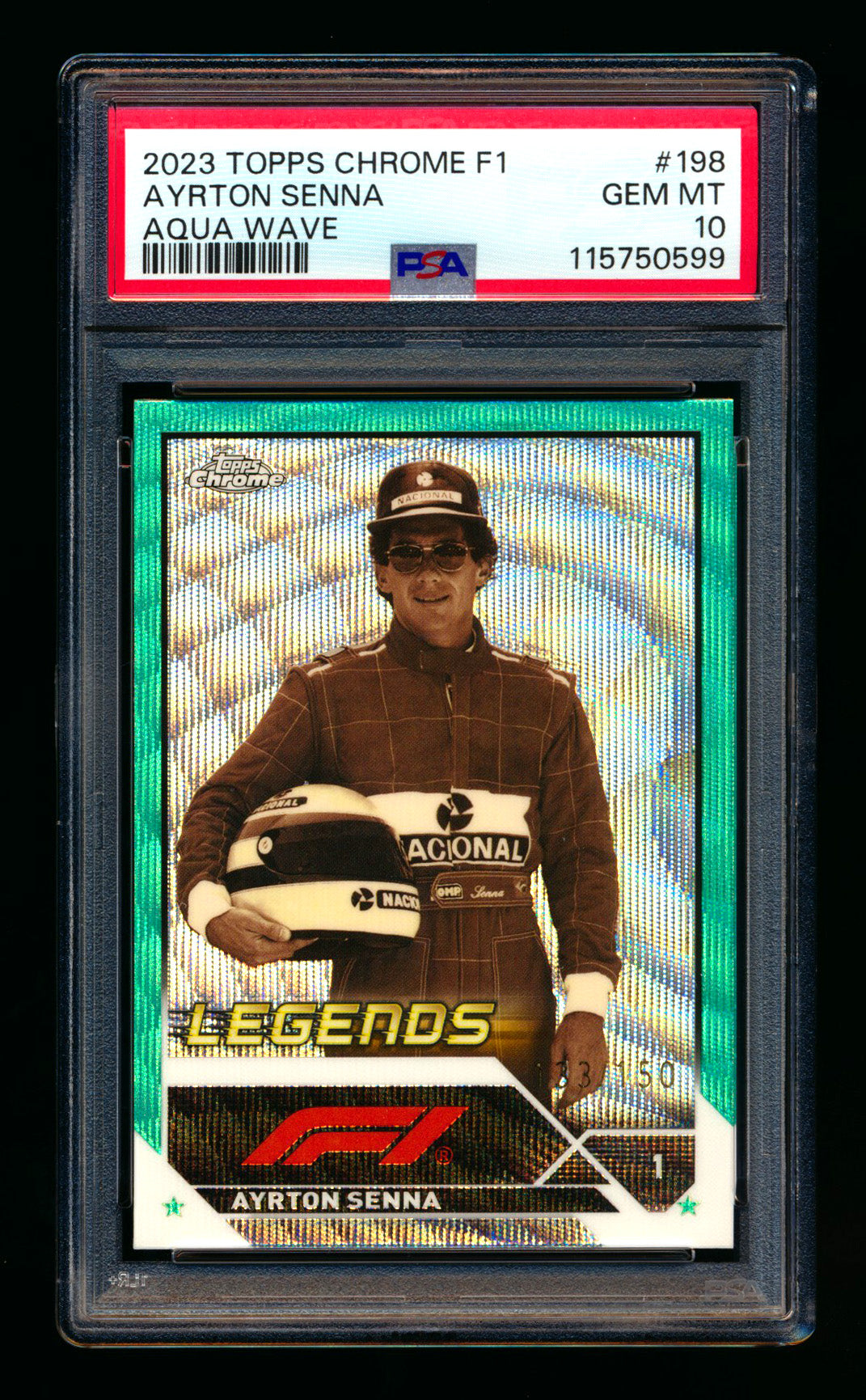 2023 Topps Chrome F1 #198 Ayrton Senna 1ST Year Aqua Wave Refractor #133/150 PSA 10 ** (SOLD - $99.00 - 8/23/2025) **