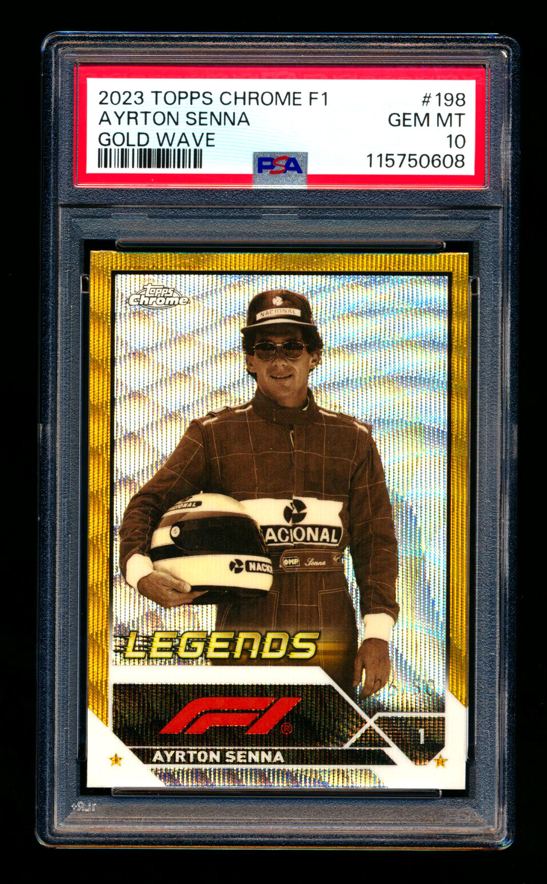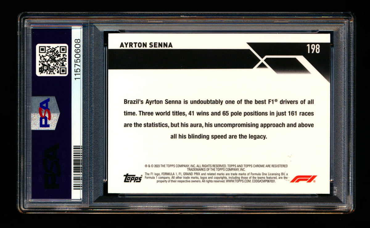 2023 Topps Chrome F1 #198 Ayrton Senna 1ST Year Gold Wave Refractor #26/50 PSA 10