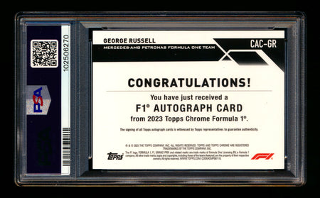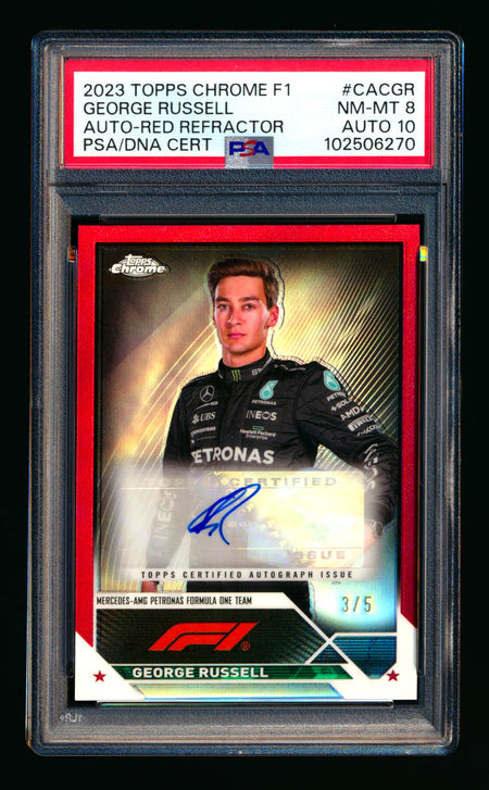 2023 Topps Chrome F1 #CAC-GR George Russell Red Refractor Autograph #3/5 PSA 8 DNA 10