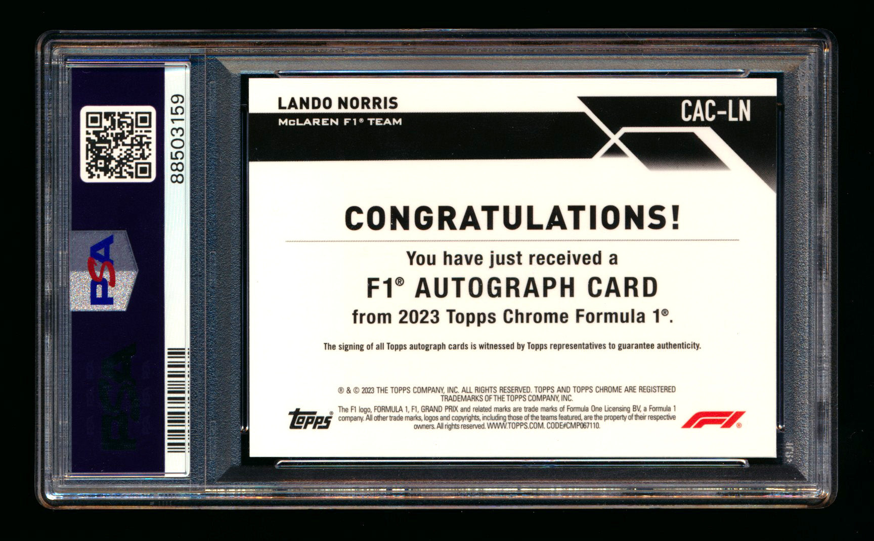 2023 Topps Chrome F1 #CAC-LN Lando Norris Refractor Autograph PSA 10 DNA 10