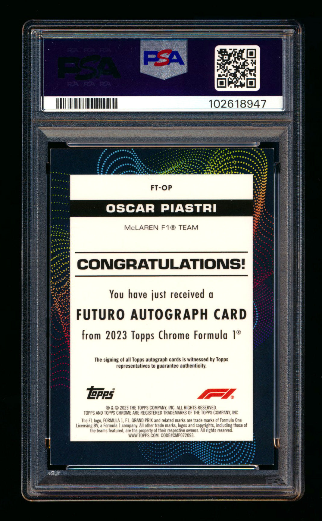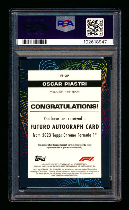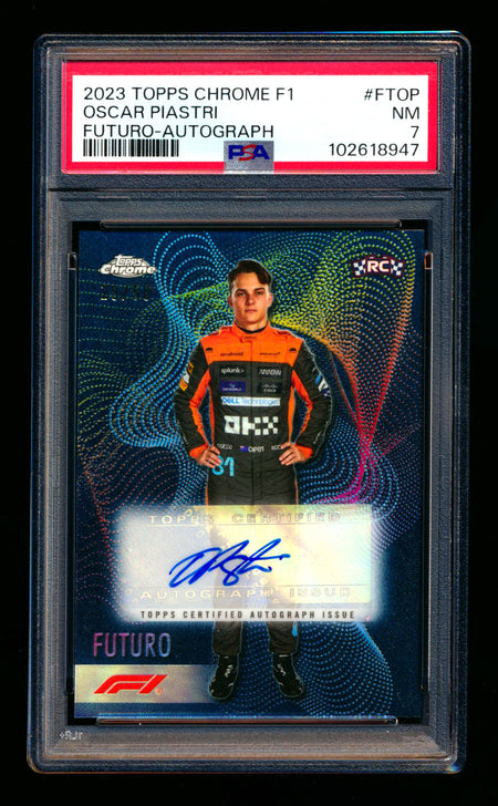 2023 Topps Chrome F1 Futuro #FT-OP Oscar Piastri RC Refractor Autograph #29/50 PSA 7 ** (SOLD eBay - $1295.00 - 8/3/2025) **