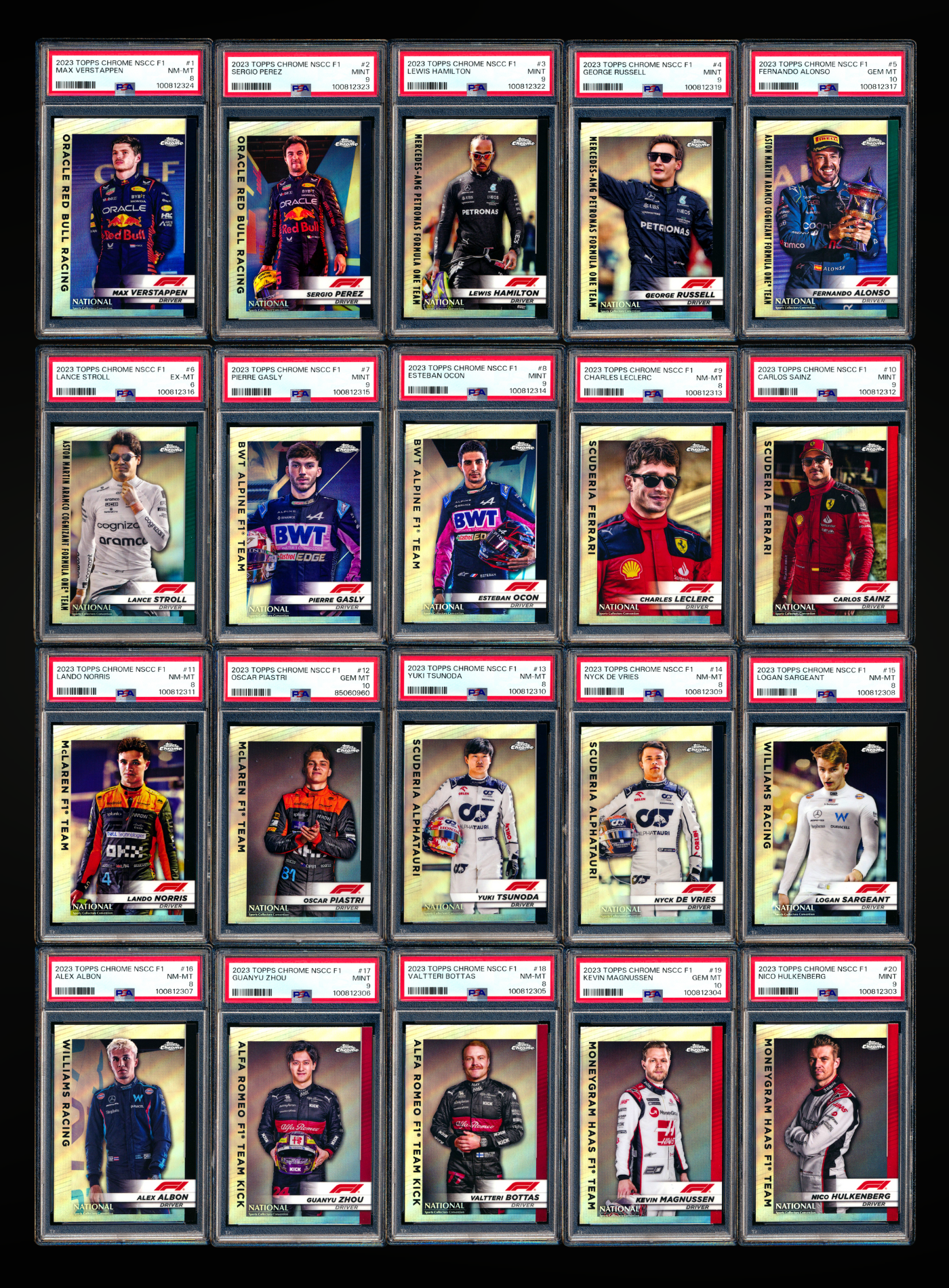2023 Topps Chrome NSCC F1 Driver Portrait Refractor Complete Set PSA (20 Card Set)