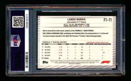 #11 Lando Norris PSA 8 | POP 1 - 1 Graded Higher |