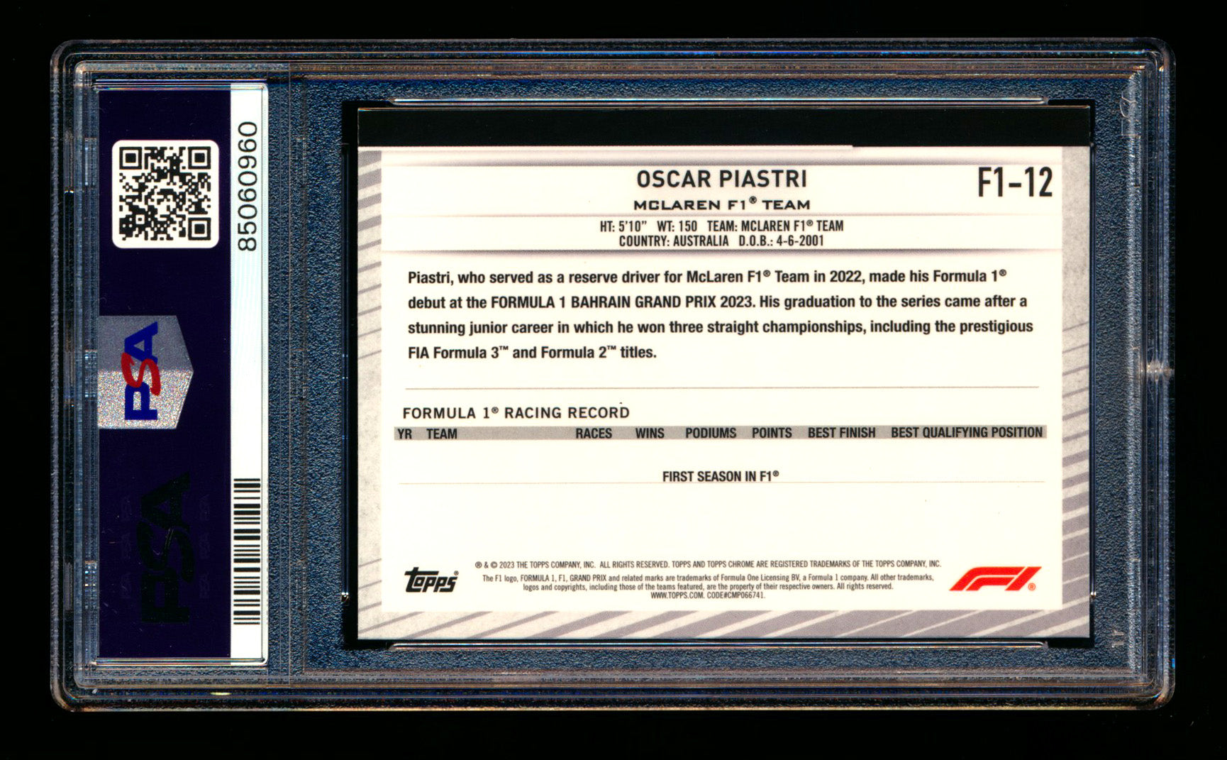 #12 Oscar Piastri RC PSA 10 | POP 2! |